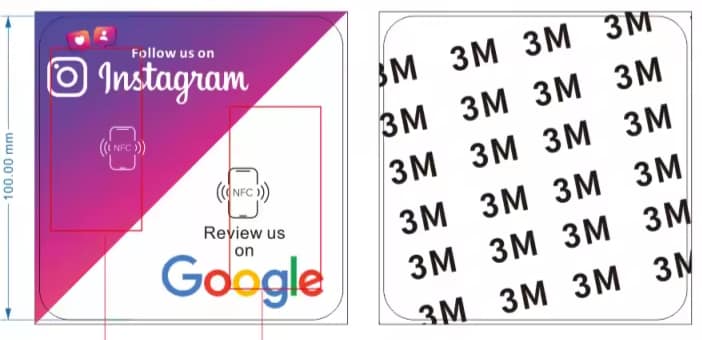Card NFC premium din acril, format pătrat 10×10 cm, creat special pentru afaceri care vor mai multe recenzii Google și mai multă vizibilitate pe Instagram, folosind un singur card elegant.